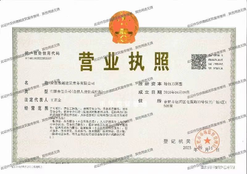 ·公司名稱:安徽徽越建筑勞務有限公司